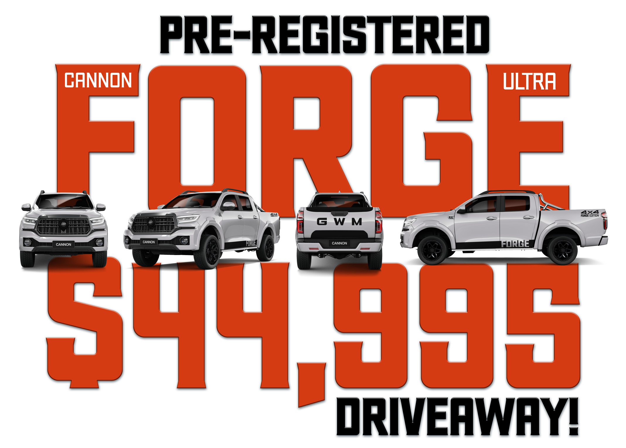 But we’ve taken it up a notch — the pre-registered Cannon Ultra Forge Edition comes loaded with over $4,000 worth of gear and drives away for just $44,995.